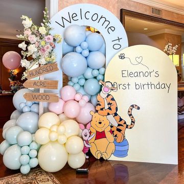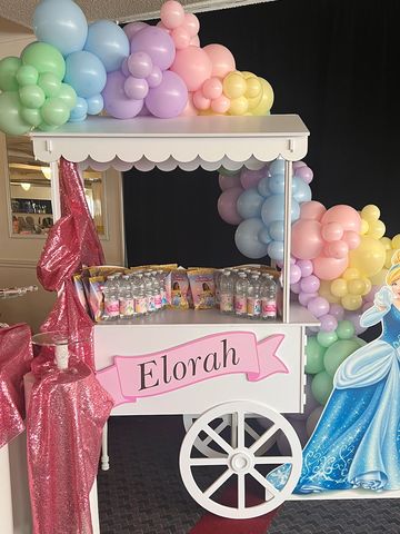 Our cart with personalization and a balloon garland is just what your party needs to tie it all together.