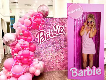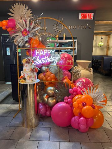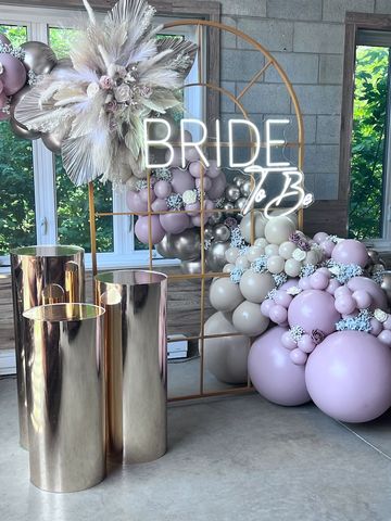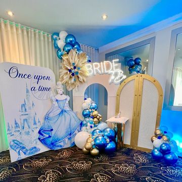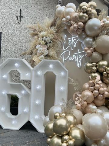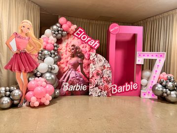 5x6 Shimmer wall with balloons on 3 sides and up-to 2 marquee light up numbers.