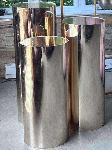 Our foil gold plinths come in 3 sizes ranging from 40" to 28" with a 12" diameter.