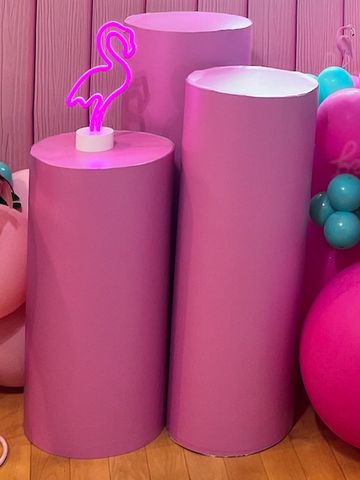 Our pink plinths come in 3 sizes ranging from 40" to 28" with a 12" diameter.