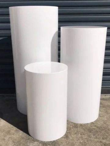 Our white plinths come in 3 sizes ranging from 40" to 28" with a 10" diameter.
