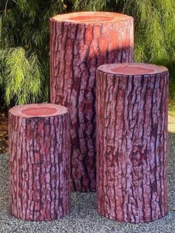 Our tree trunk plinths come in 3 sizes ranging from 35" to 24" with a 13" diameter.
